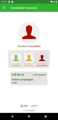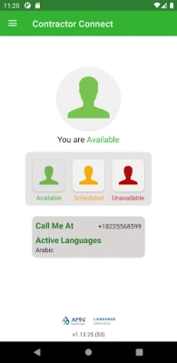 The Contractor Connect application allows you to control your availability for interpreting sessions, receive notifications from AMN, and track your session history.