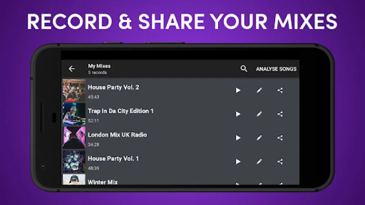 • Cross DJ can mix your tracks & play music automatically, from any source with Automix (playlist, album, etc.)