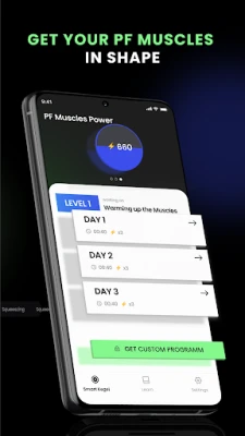 The first level (free version) includes 2 kegel exercises. Starting from level 2, the exercises are gradually added to your workout routine. After completing the training, you’ll feel like you’re 18 again - your men's health will never bother you! With the app you’ll know how to do pelvic floor exercises and how to tighten pelvic floor muscles quickly.