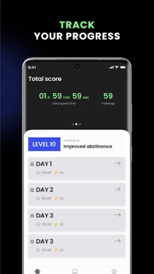 Each next training day opens after you complete the previous one. Our sexual health app doesn't limit you to only 1 training per day. You can exercise at your own pace and finish the whole level, or even all 13 levels, in 1 day!