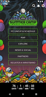 This is the official Summer Camp Music Festival phone app. The 22nd annual event is being held May 26-28, 2023 at Three Sisters Park in Chillicothe, IL and this is your electronic guide for the weekend. Use this app to stay up-to-date with the festival announcements, create your own schedule, view the festival map, learn more about our vendors, partners and on-site accommodations and more! Be sure to turn on push notifications to catch all of our announcements and festival updates lead up to and throughout the weekend!