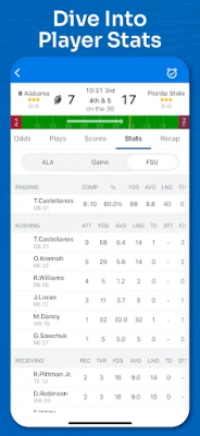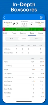 - Live College Football Scores & Stats: Real-time box scores, play-by-play, and detailed team & player stats.