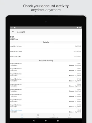 Save time and hassles while making the most of your HSA, HRA, and FSA health benefit accounts by quickly checking your balances and details. Our secure app makes managing your health benefits easy through real-time access and intuitive navigation to all your important account information on the go!  Powerful features of the app include: