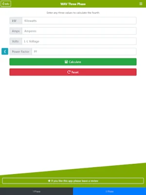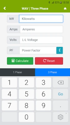 This app is a great companion to our kVA Calculator and Ohms Law Calculator apps.